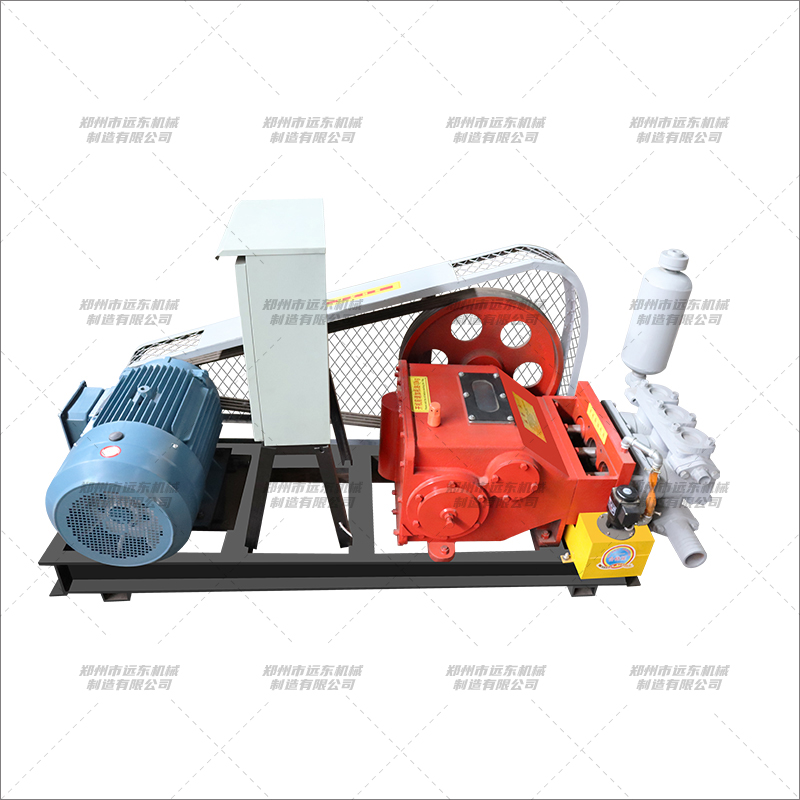 BW300注漿機(jī)主要作用于隧道開鑿與維護(hù)道路、橋梁、水壩、礦山建設(shè)和高層建筑的基礎(chǔ)設(shè)施處理工程及各類注漿施工工程,巖芯鉆機(jī)配套輸送泥漿,礦井排污及遠(yuǎn)距離送水等其他用途。 該機(jī)為臥式三缸往復(fù)單作用活塞泵,該泵具有兩種缸徑和四擋變量,大缸套用于1000米大口徑鉆機(jī)配套,小缸套用于1500米小口徑鉆機(jī)配套。 1、具有可滿足大小口徑鉆機(jī)所需的各四擋流量,參數(shù)選合理,可與XY-4和XY-5型鉆機(jī)配套使用??蓾M足不同口徑、不同孔深、不同地質(zhì)巖心鉆探的需要。 2、活塞為碗形加尼龍靠背的自封式S型聚胺脂橡膠活塞,大大提高使用壽命。3、拉桿上設(shè)有五道防塵密封圈,以防止液力端的泥漿帶入動力端和動力端潤滑濾。密封可靠,使齒輪延長使用壽命。 4、進(jìn)排水閥采用鋼球。并在閥蓋上設(shè)有減聲橡膠墊,以減少沖擊噪聲。5、壓力表采用BY-1型抗震壓力表,壽命長。 6、可拆性好,便于維修和搬遷。